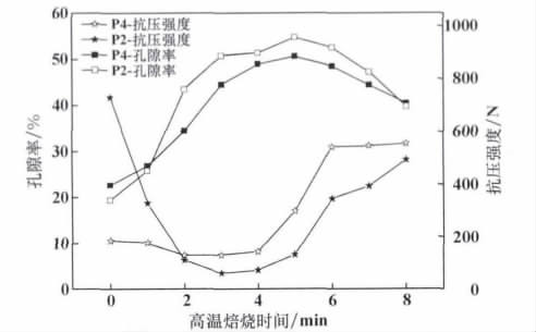 圖2 高溫焙燒不同時(shí)間時(shí)球團(tuán)孔隙率的變化